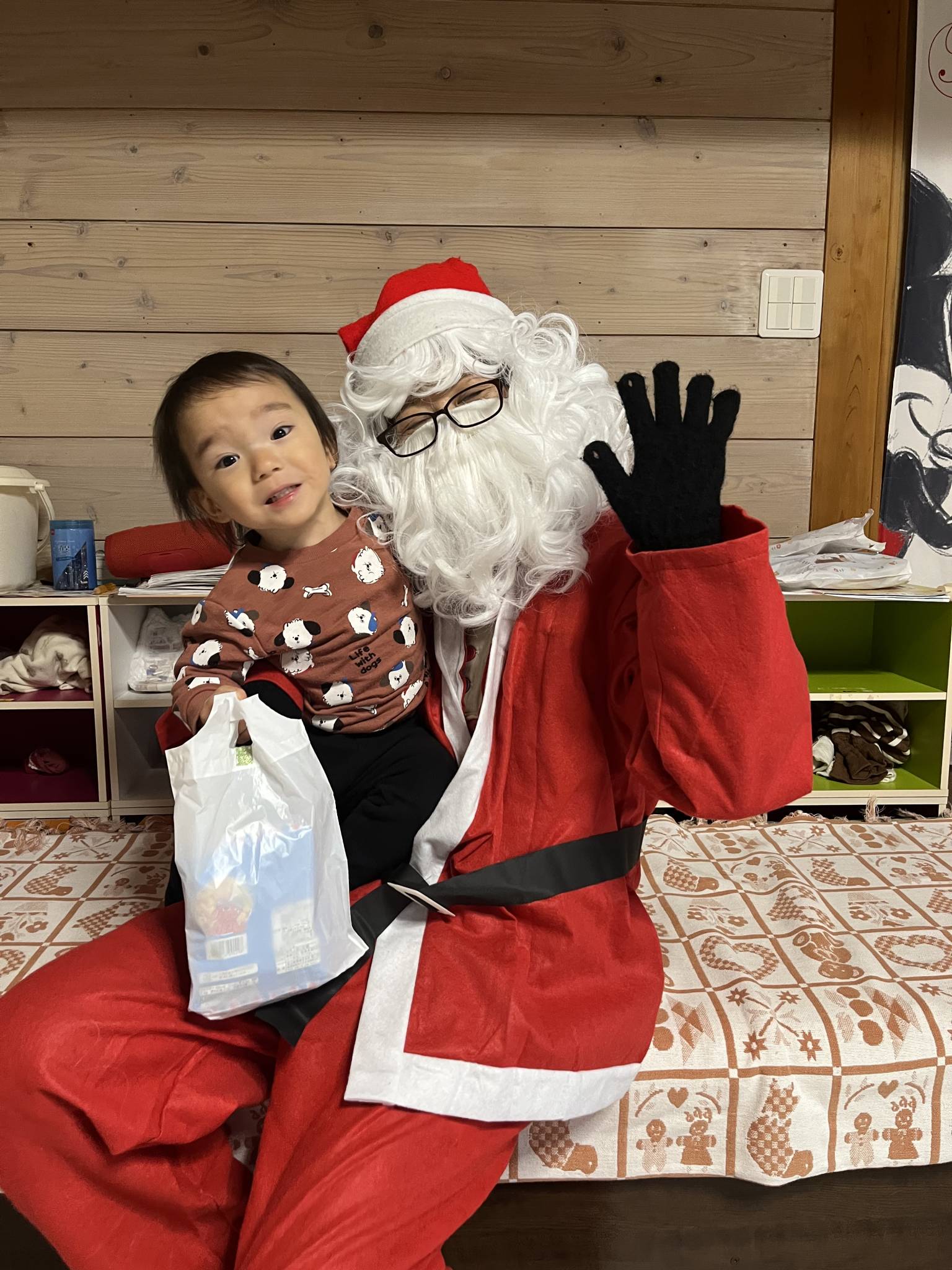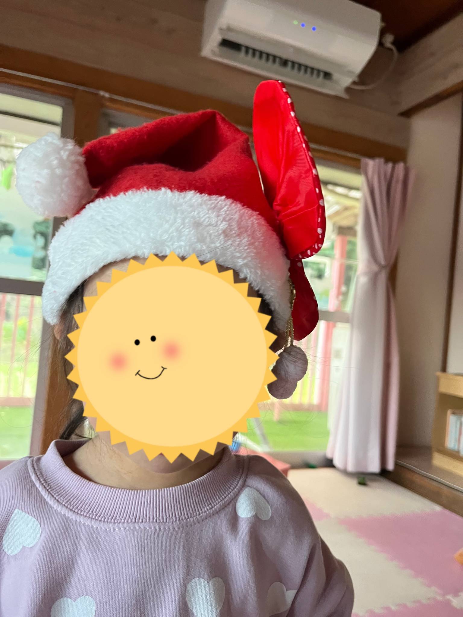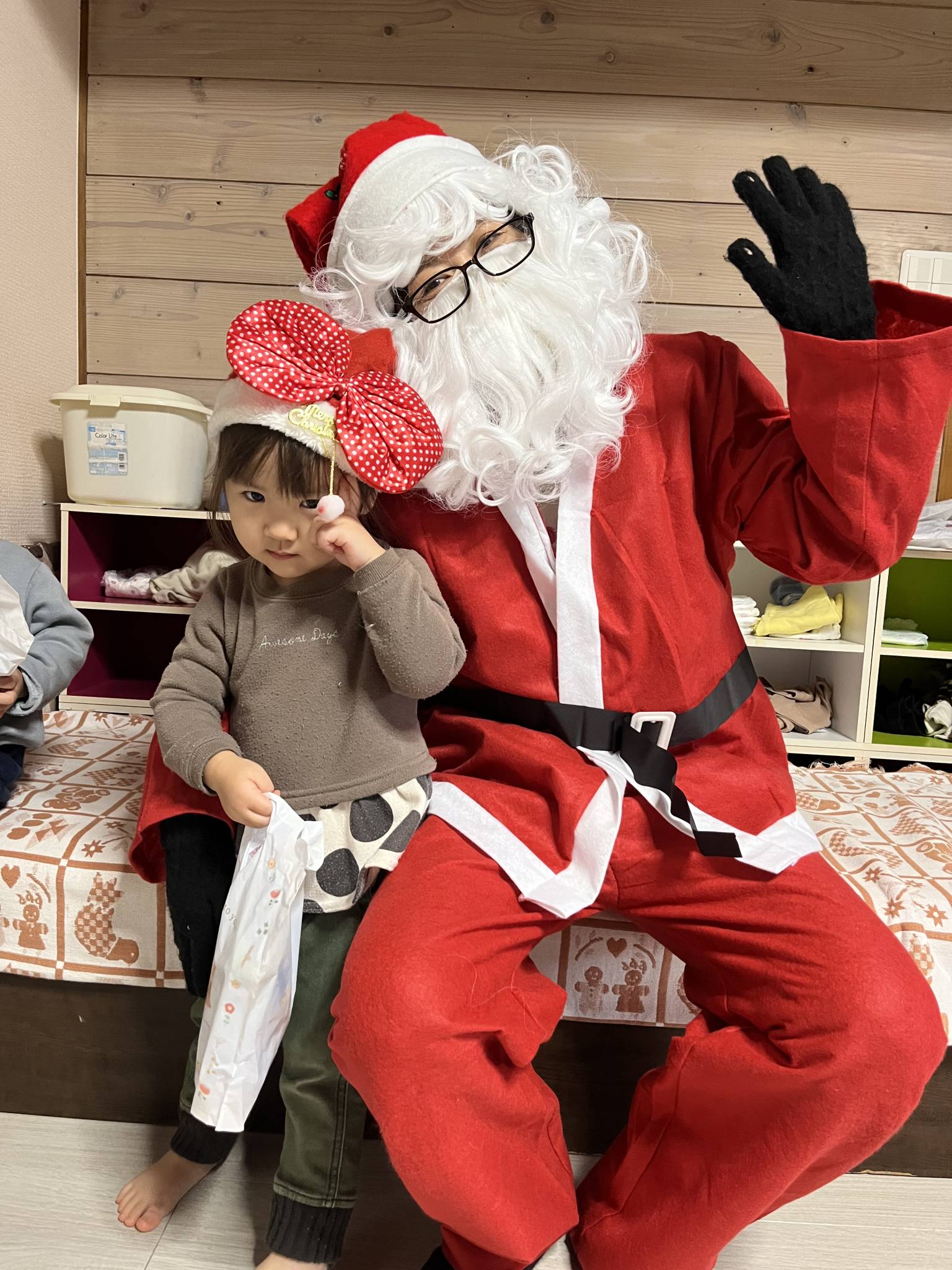 でもサンタさんからお菓子もらってちゃんと「ありがとう」って言えていて成長を感じました。