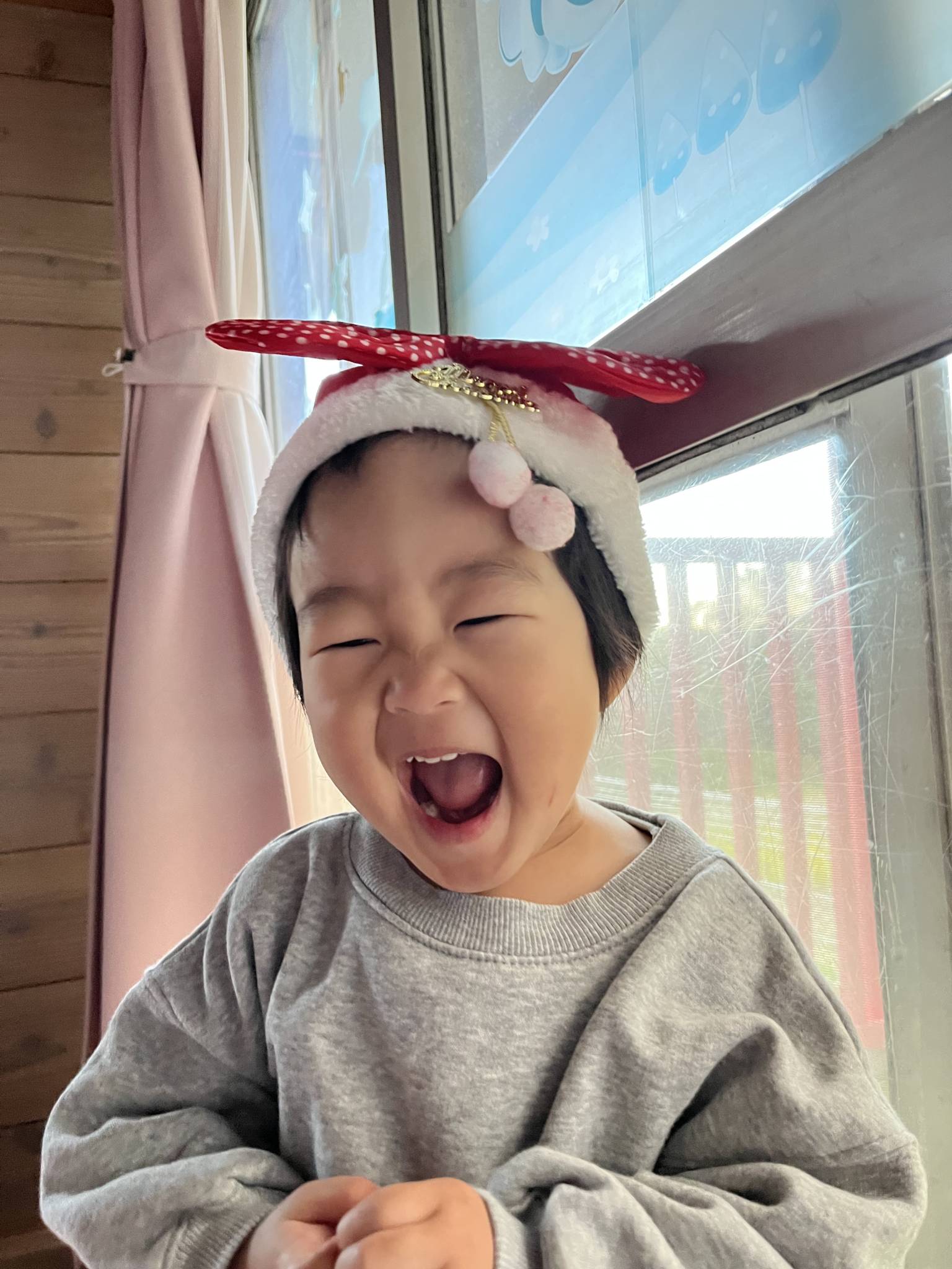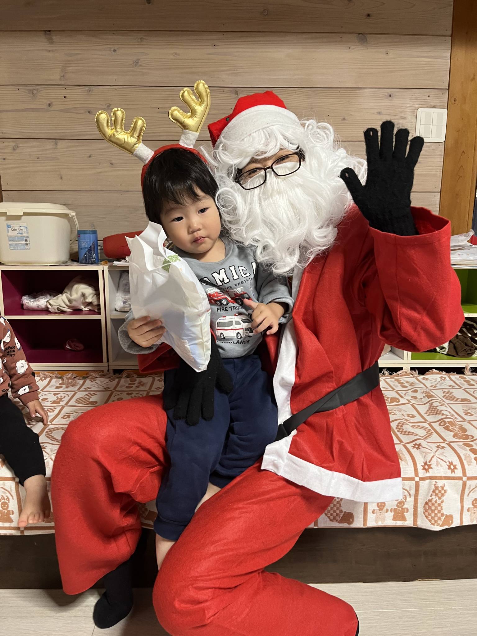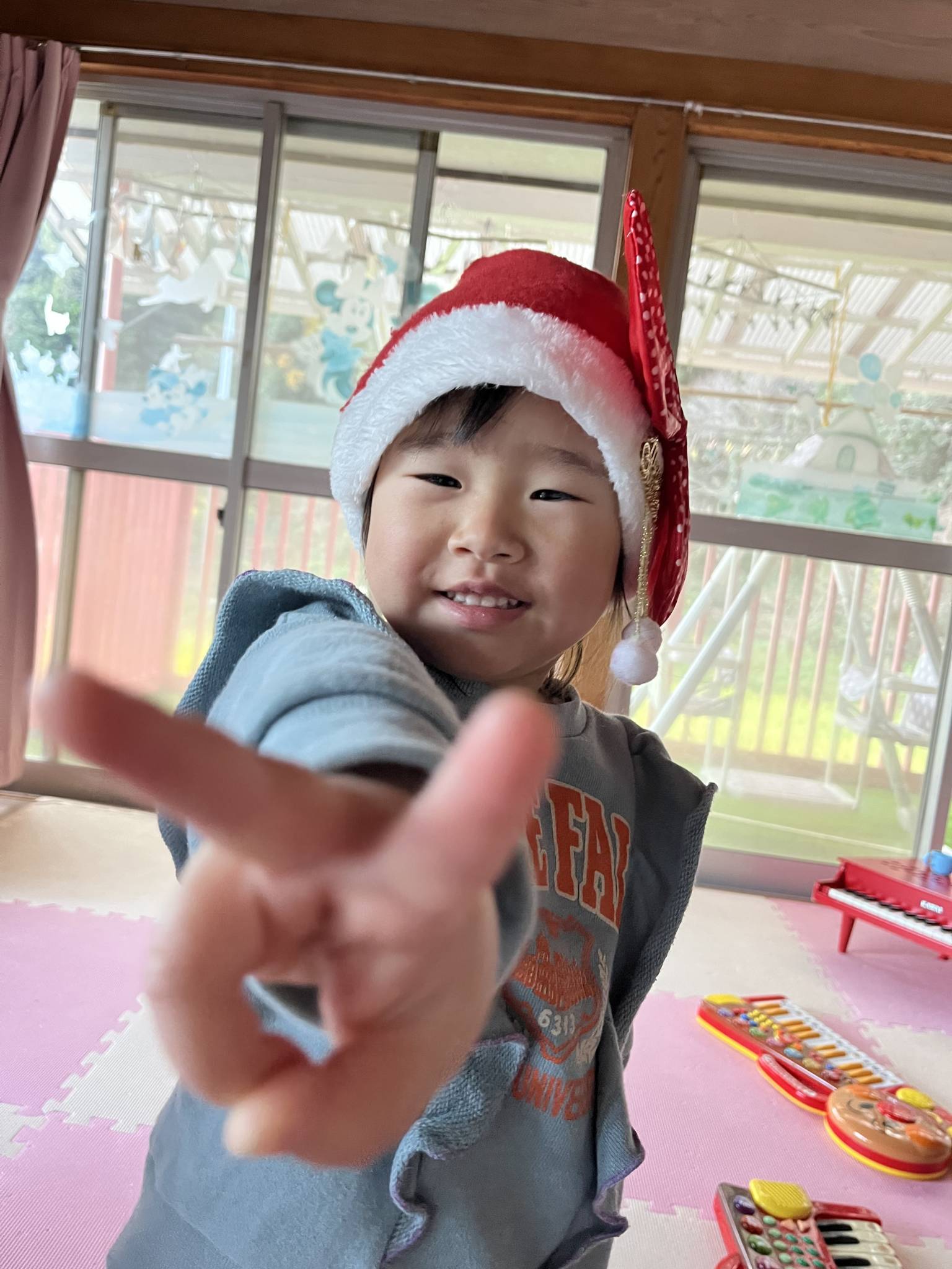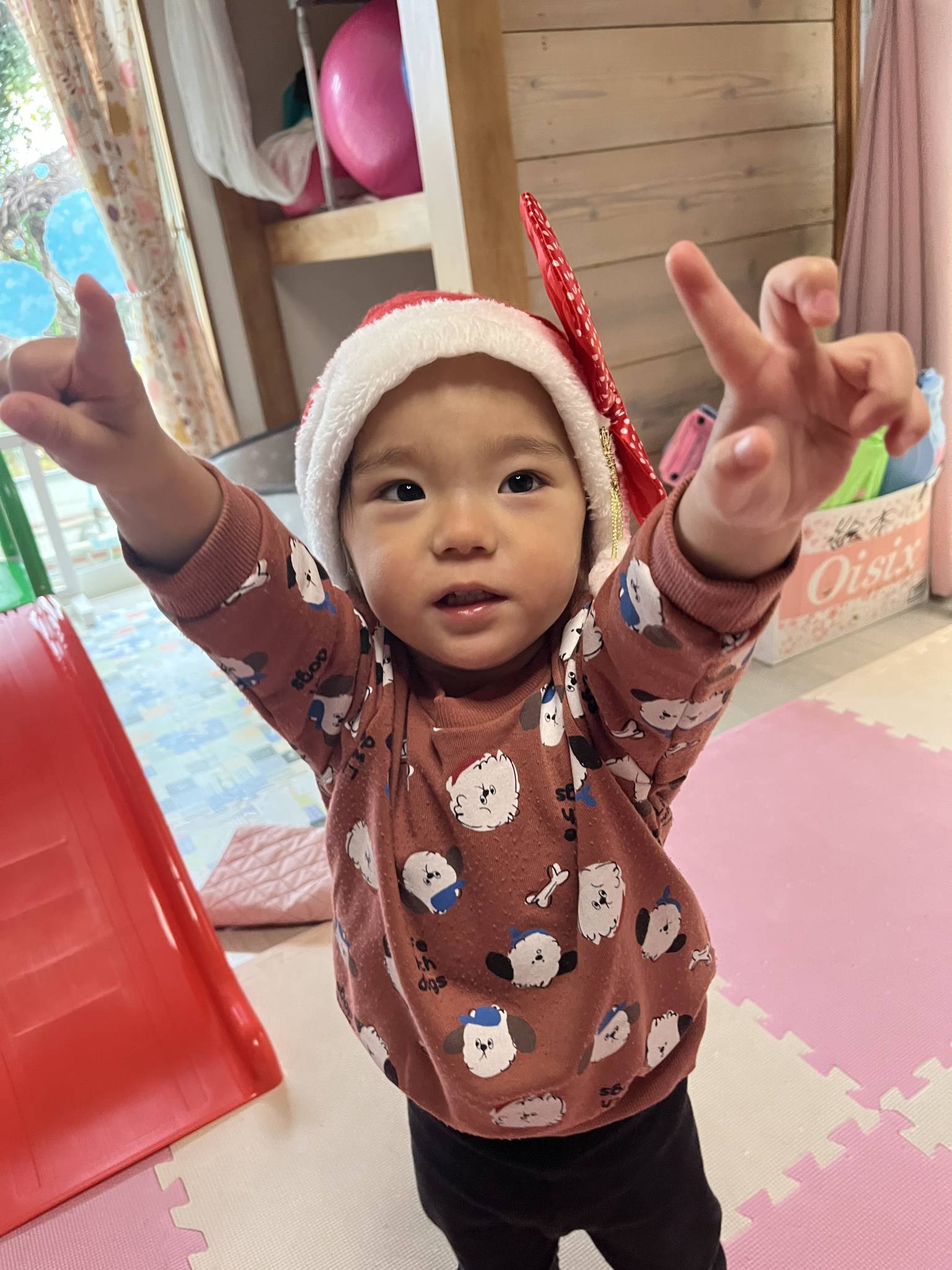 でもサンタさんからお菓子もらってちゃんと「ありがとう」って言えていて成長を感じました。